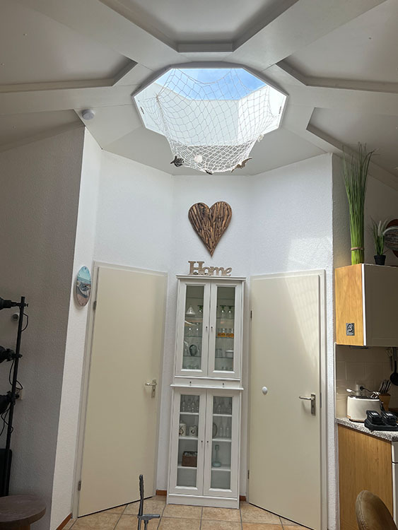 Der 2025 renovierte Bungalow überzeugt durch seine außergewöhnliche Form und die Lichtkuppel, die den gesamten Wohn-/Essbereich mit natürlichem Licht erfüllt. Mit viel Liebe zum Detail und hochwertigem Mobiliar eingerichtet, bietet das Haus alles für einen entspannten Urlaub.